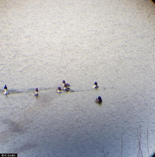 Goosander - 4 - 1 male 3 redheads ; Tufted Duck - 2