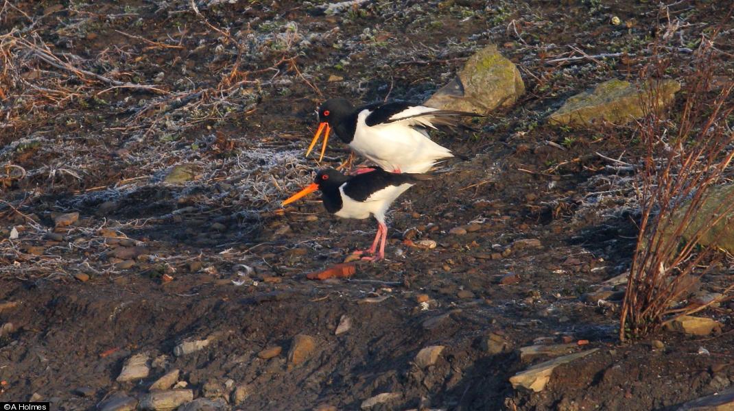 Great Crested Grebe - 4 - The dance pt3 ; Little Grebe - 1 ; Great Black-backed Gull - 2 ; Gadwall - 3 ; 320 - 1 - Male ; Wigeon - 10 ; Lapwing - 2 ; Pochard - 3 - Males ; Pied Wagtail - 2 ; Goose sp - 5 - Abandoned eggs on top of island ; Oystercatcher - 3 - Copulation observed on small lake island