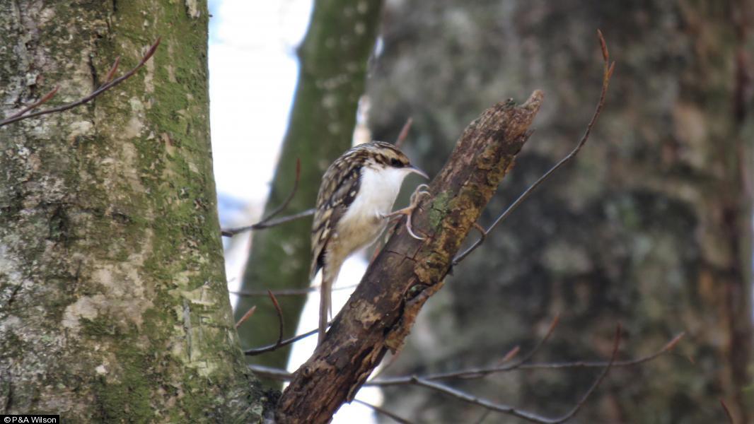 Treecreeper - 2 ; Nuthatch - 2 ; Great Spotted Woodpecker - 1 - Female, drumming ; Jay - 4 ; Long-tailed Tit - 1 ; Goldcrest - 1 ; 319 - 1