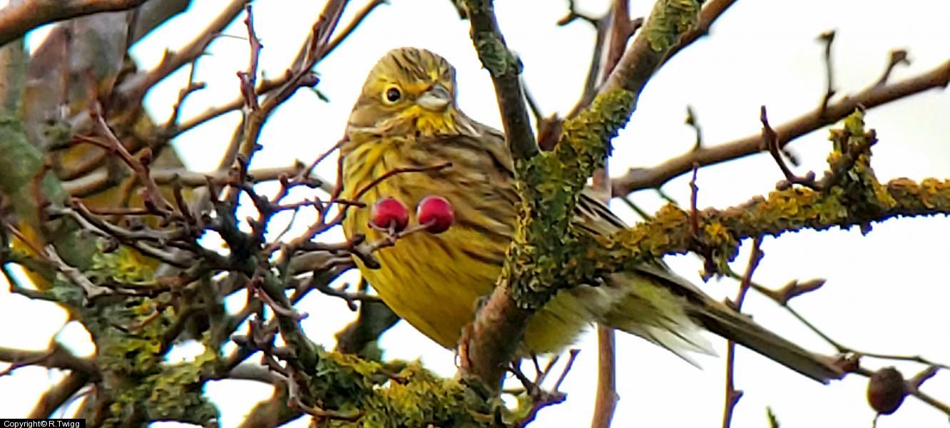 Yellowhammer - 43 - At least 42 flushed from stubble field by metal detectorist. ; Starling - C300 ; Fieldfare - 100+ - Feeding in Hawthorns ;