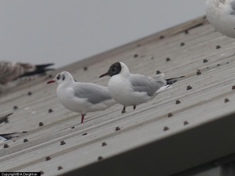 Black-headed Gull - 112 - roosted ; Common Gull - 1 - adult roosted with BHGs