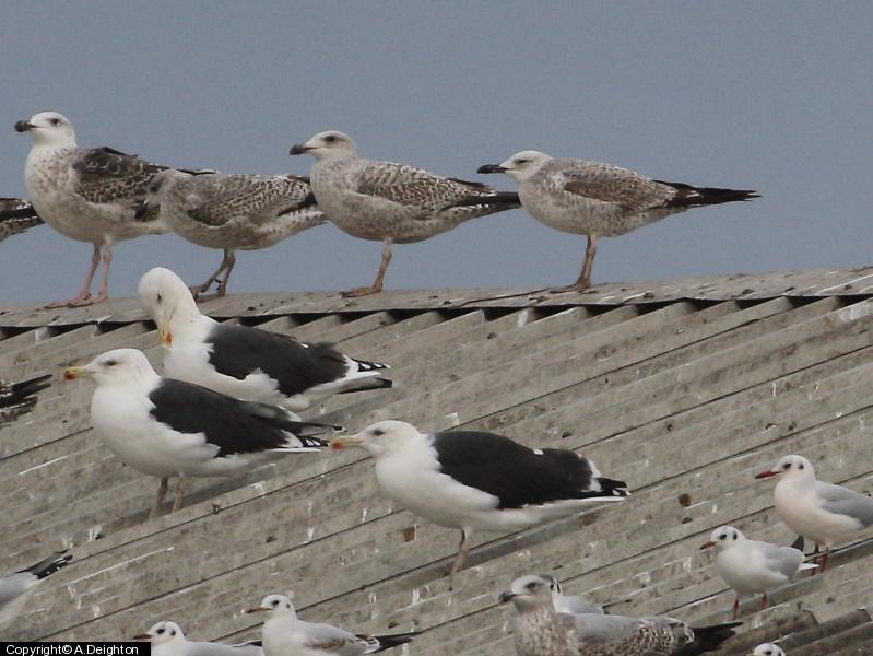 - 1 - 1w again at Warren St ; Herring Gull - c130 ; Great Black-backed Gull - 10 ; Black-headed Gull - c80 - inc bird with near full hood