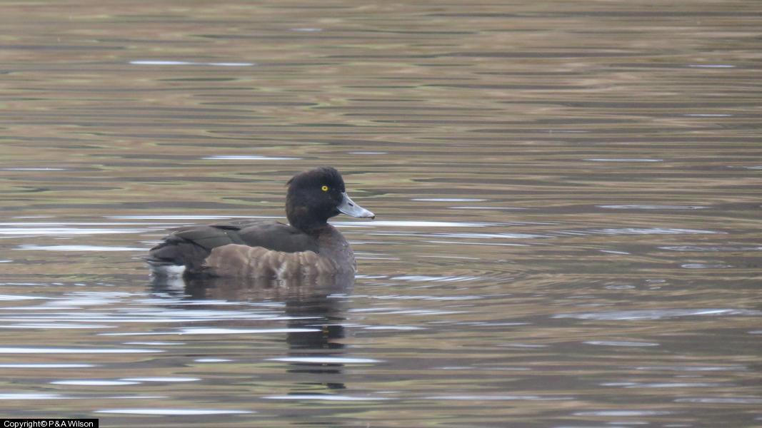 Merlin - 1 - Flying fast and low across the reservoir into shoreline bushes ; Kestrel - 1 ; Great Crested Grebe - 4 ; Gadwall - 6 ; Wigeon - 1 ; Tufted Duck - 4 ; Goosander - 3 ; Moorhen - 6 ; Blackbird - 6 ; Starling - 20 ; Chaffinch - 2 ; Goldfinch - 1 ; Mallard - 6 ; Mute Swan - 2 ; Blue Tit - 3 ; Coot - 1 ; House Sparrow - 2