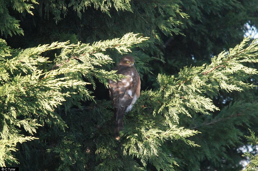 Sparrowhawk - 1 - soaring over @ 1108hrs ; Peregrine - 1 - adult, on chimney