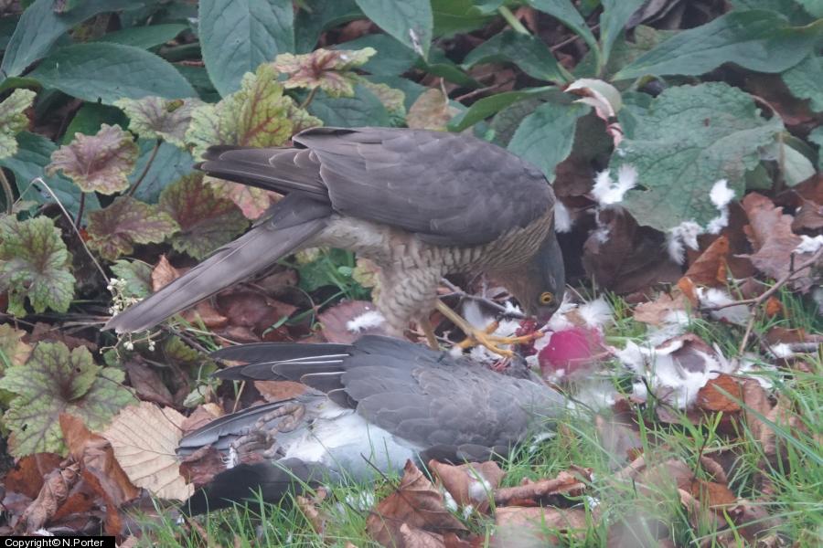 Sparrowhawk - 1 - An almighty tussle to kill a woodpigeon in observers garden