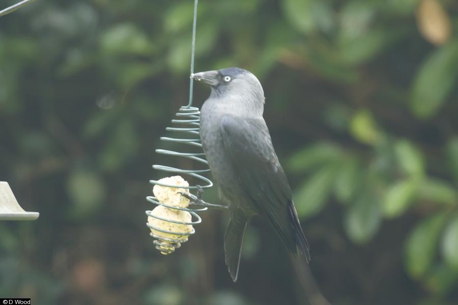 Jackdaw - 8 - around feeders, including one showing characteristics of 'Nordic' Jackdaw (monedula) ; Jackdaw - 1 - another picture of monedula-type bird