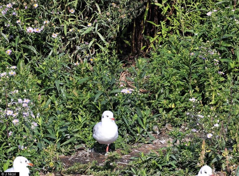 Little Grebe - 4 ; Tufted Duck - 6 ; Chiffchaff - 10 ; Swallow - 5 - flew SW ; Lesser Black-backed Gull - 14 ; Herring Gull - 3 ; Lesser Redpoll - 4 - flew SW ; Moorhen - 1
