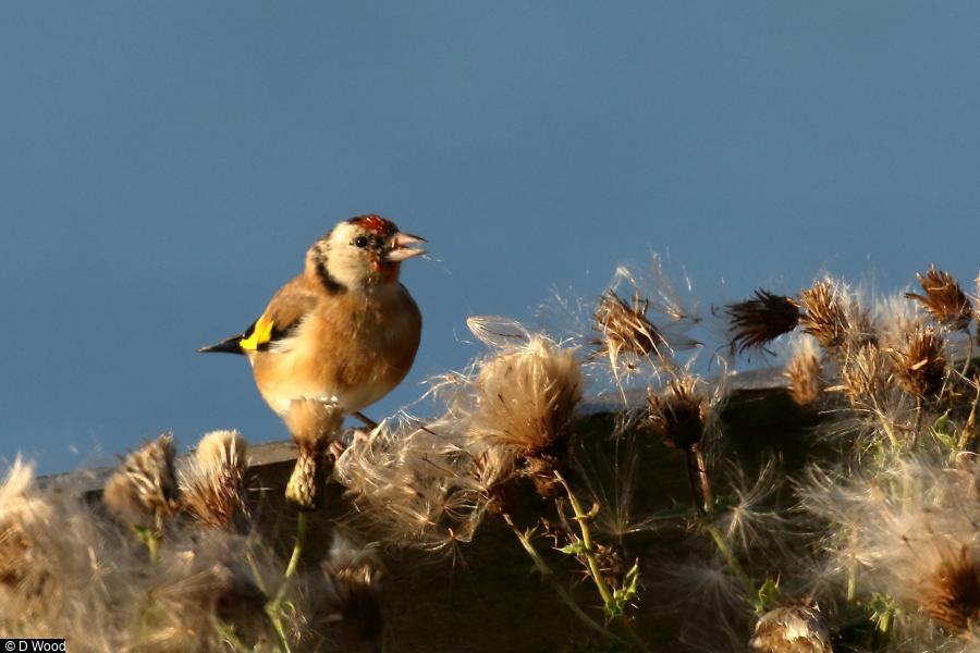 - c.650 - another photo ; Lesser Redpoll - 2 - over ; Nuthatch - 2 ; Goldfinch - 15 - feeding on thistle down