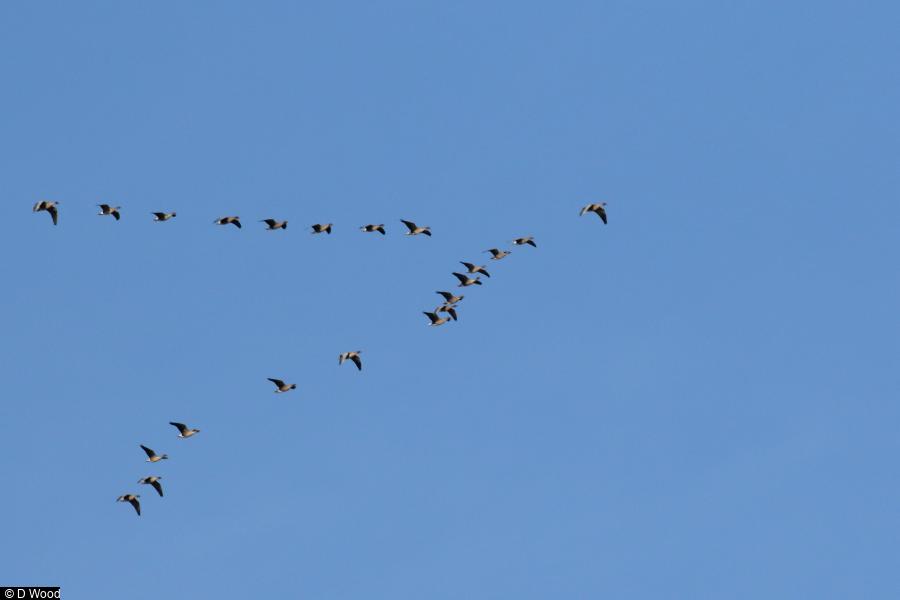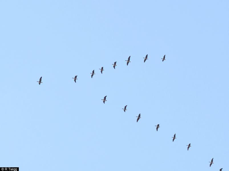 - 660 - east in 7 skeins from around 08:20 - 09.40 hrs ; Peregrine - 1 - hunting over Bottom Res ; Kestrel - 5 - in general area ; Stonechat - 2 ; Chiffchaff - 18 - still present around reservoir perimeter ; Siskin - 5 ; Lesser Redpoll - 2 - flew NE - first of autumn ; House Martin - 2 - flew W ; Swallow - 1 - flew W ; Meadow Pipit - 25 - flock on walls along conduit