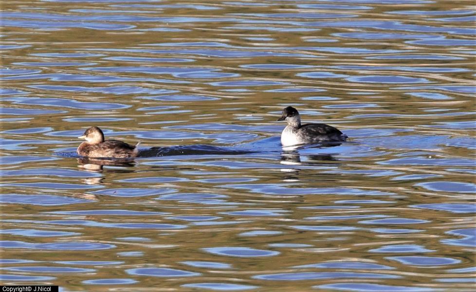 Little Grebe - 4 ; Tufted Duck - 15 ; Moorhen - 1 - juv ; Lesser Redpoll - 6 - flew W ; Siskin - 50 - c. flew SW ; Chiffchaff - 14 - around reservoir perimeter