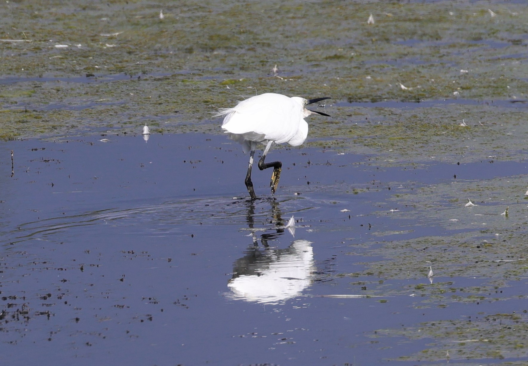 Little Egret - 1 - in iris beds on Woodlaithes duckpond at 10.40