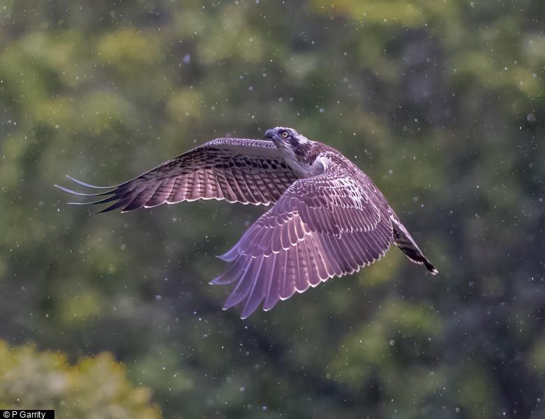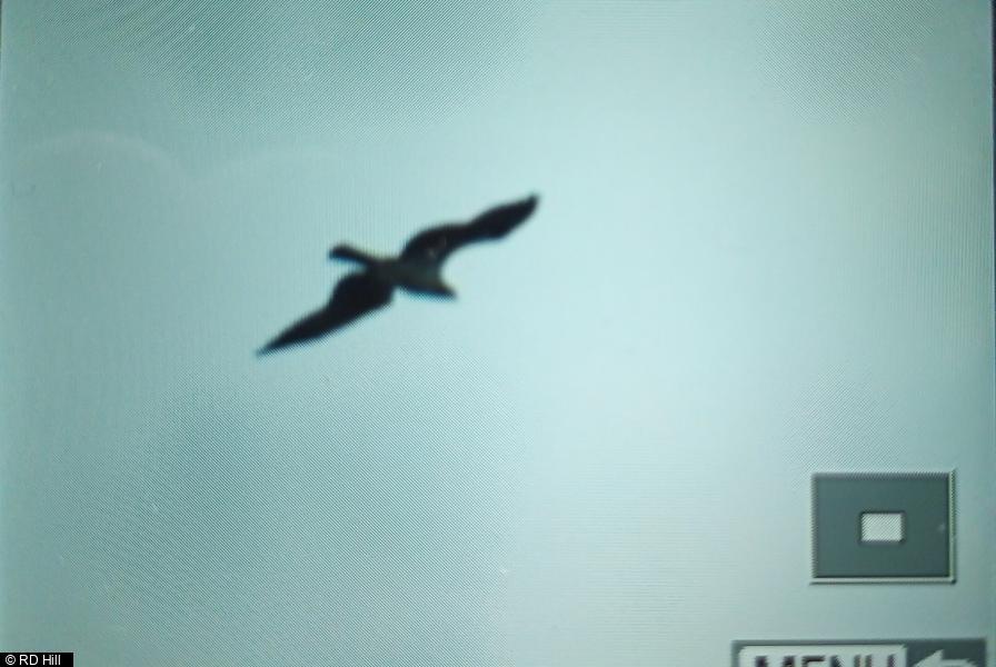 Peregrine - 1 - adult, probably female, on safety rail from 0745hrs. Displaced by BZ which it mobbed noisily. Returned to rail later ; Common Buzzard - 1 - settled on safety rail before chased off by PE