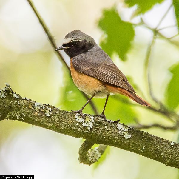 Jay - 2 - Pair ; Redstart - 2 - Individual males ; Mistle Thrush - 4