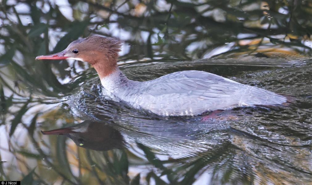 Goosander - 1 - Juvenile on river around weir.