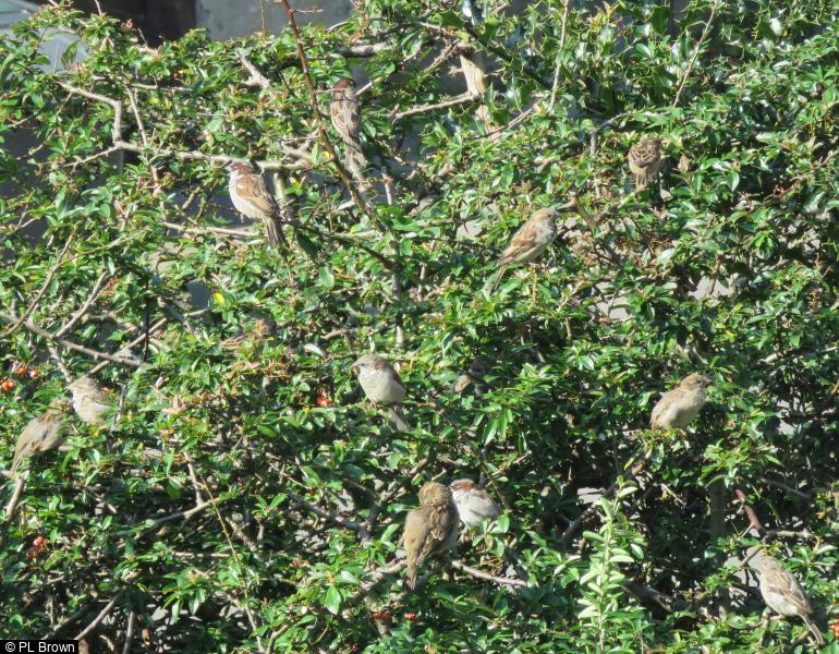 House Sparrow - 30+ - 30+ in the observer's garden. A fairly good breeding season. ; Bullfinch - 3+ - A pair and at least one juv in the observer's garden