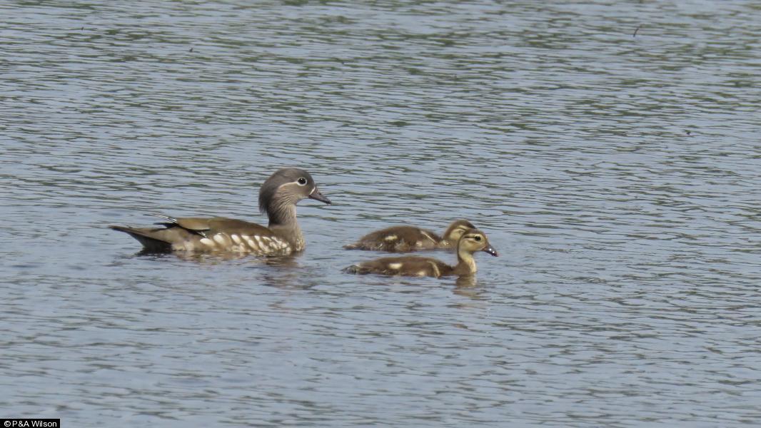 Cormorant - 1 ; Mandarin - 2 - 1f,1m ; Wren - 1 ; Chiffchaff - 2 ; Canada Goose - 102+ - c102 + c26 goslings ; Greylag Goose - 20+ - c20 + 3+ goslings ; Common Sandpiper - 6 - singles ; Willow Warbler - 5+ ; Pheasant - 3 ; Mistle Thrush - 1 ; Song Thrush - 1 ; Chaffinch - 25+ - Mixed flock including juvenile Chaffinches ; Nuthatch - 1 - heard