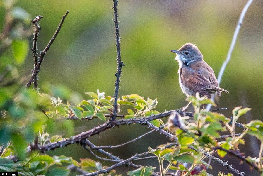 Whitethroat - 3 - Singing, 1 parachuting in song. ;