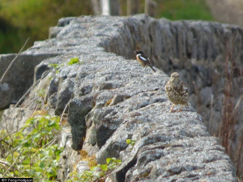 Mistle Thrush - 2 - pair, one with white patch on right wing ; Stonechat - 2 - pair ; Tree Pipit - 2 - pair with male displaying ; Tree Pipit - 2 - another photo ; Cuckoo - 1 - heard N ; Wheatear - 2 - pair ; Reed Bunting - 1 - singing ; Jackdaw - 1 - over E