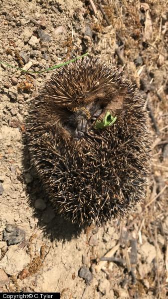 Blackcap - 3 ; Chiffchaff - 2 ; Willow Warbler - 5 ; Reed Bunting - 1 ; Skylark - 2 ; Yellowhammer - 2 ; Chaffinch - 1 - Singing Male. ; Goldfinch - 5 - Drinking from sluice. ; Pheasant - 1 - Nest with 13 eggs predated. ; Long-tailed Tit - 2 - Pair with nest. ; 324 - 1 - Hedgehog.