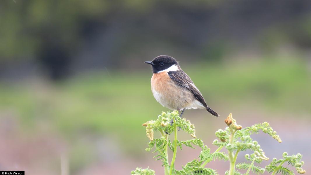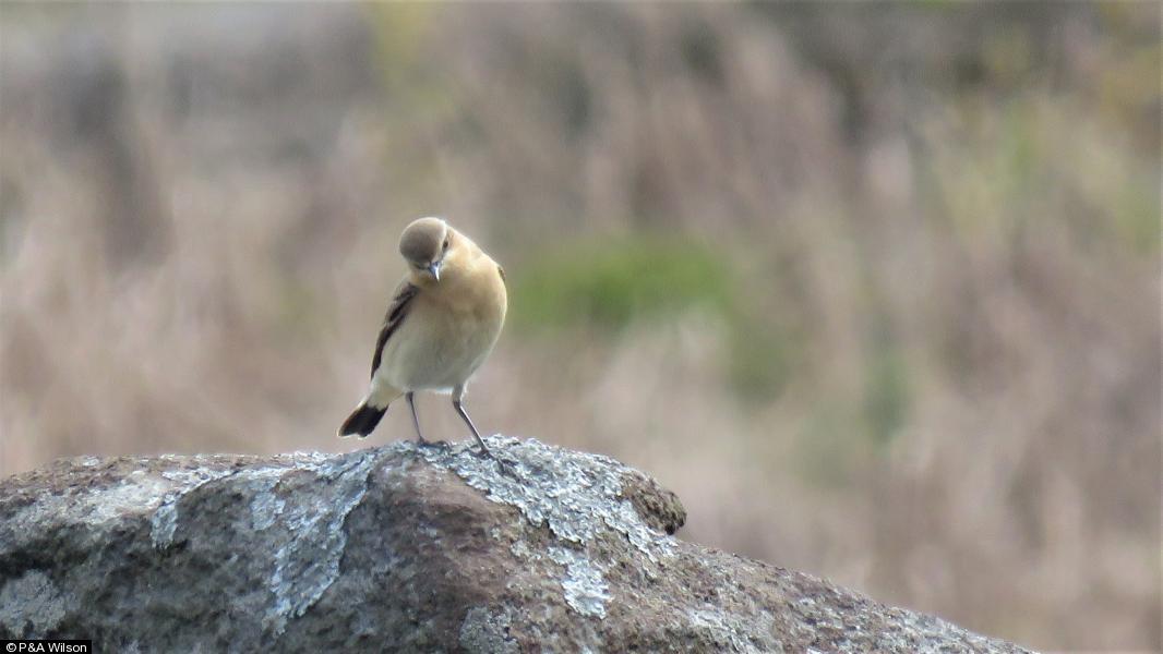 Ring Ouzel - 2 - Males, seen together ; Wheatear - 1 - Female ; Stonechat - 4 - 1 Female, 3 Males ; Willow Warbler - 2 ; Willow Warbler - 2 ; Whinchat - 2 ; Meadow Pipit - 8 ; Cuckoo - 1 - Heard from plantation