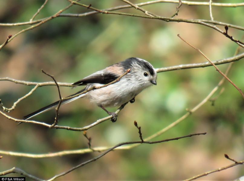 Great Spotted Woodpecker - 3 ; Jay - 2 - one bird unusually confiding ; Grey Heron - 1 ; Song Thrush - 1 ; Long-tailed Tit - 2 ; Bullfinch - 1