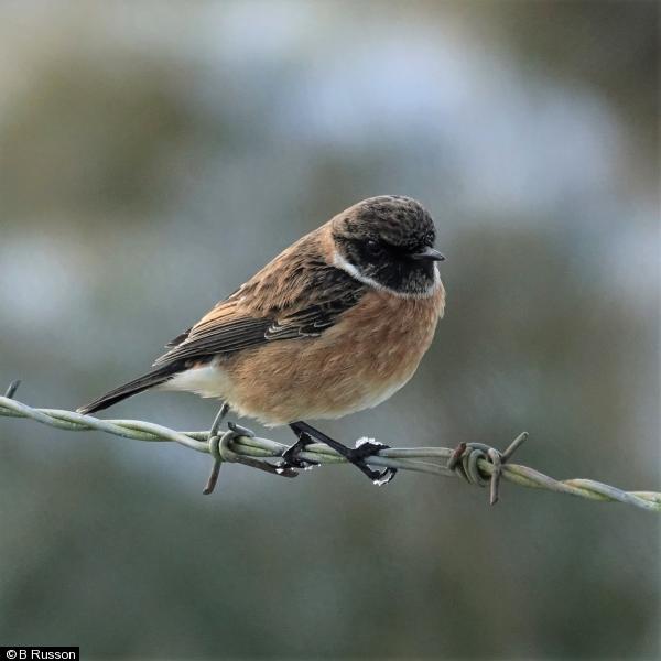 Stonechat - 2 - 2 males along roadside walls ; Lapwing - 42 - in roadside fields with c100 starlings ; Stonechat - 2 - another photo