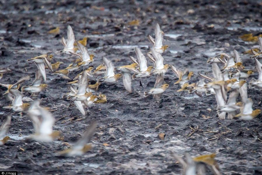 Curlew - 1 ; Lapwing - 25 ; Golden Plover - 300 - 400 ; Golden Plover - 300-400 - Another photo