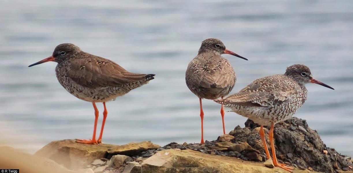 Little Ringed Plover - 1 - adult ; Ringed Plover - 1 - juv ; Redshank - 4 ; Common Tern - 4 - 3adults and 1 Juv ; Tern sp (Common/Arctic) - c25 - Sterna Terns seen to go south very high at 10:15