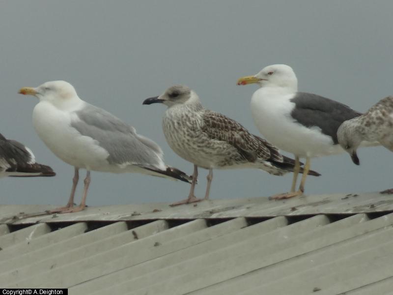 - 1 - still present on Middle Res in late afternoon ; Lesser Black-backed Gull - 7 ; Black-headed Gull - 25 - c.